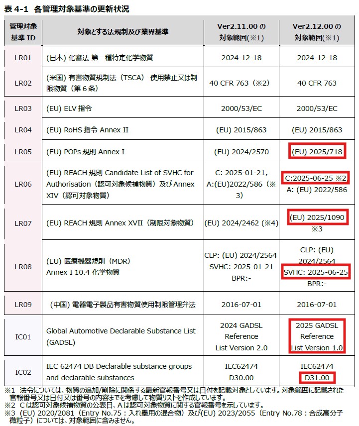 詳細は、ダウンロードしたフォーマットに同梱されている「chemSHERPA 管理対象物質 Ver2.12.00 説明書(Explanation_of_chemSHERPA_Declarable_Substances_Ver2.12.00_rev_JP.pdf)」をご覧ください。