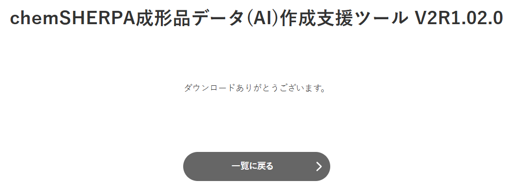 「chemSHERPA成型品データ(AI)作成支援ツール 〇〇」のページへ遷移します。